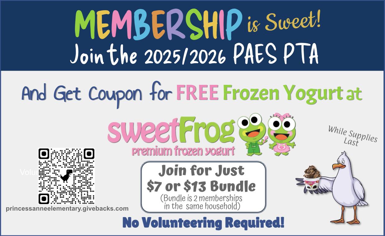 - Join as PAES PTA member online here: https://princessanneelementary.memberhub.com/store