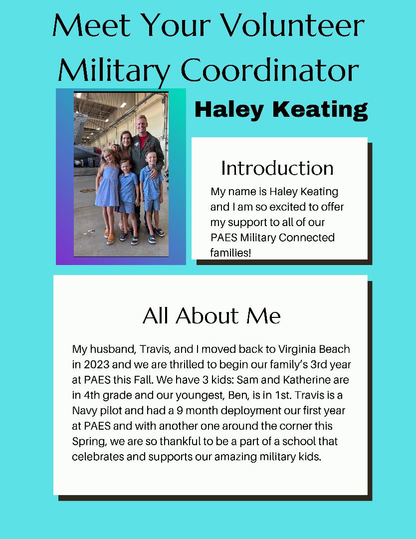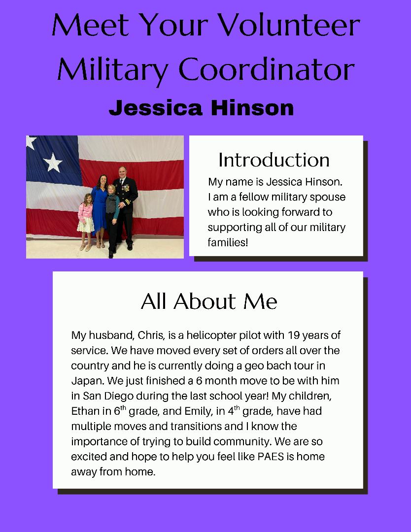 - Month of the Military Child (MOMC)- PAES is excited to celebrate our military children in April and hope you will join us, be on the lookout for upcoming announcements about events and Activities.