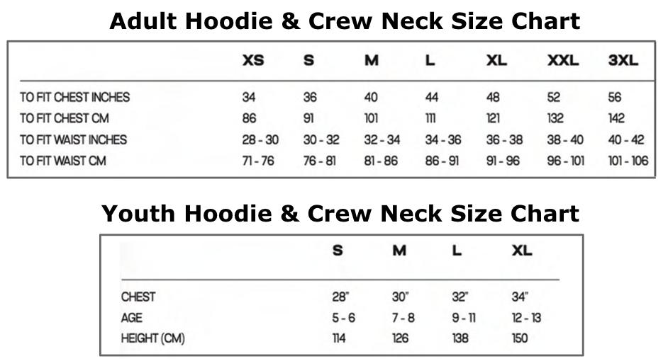 Note: The hoodie and crew neck sweatshirts are the same material.
